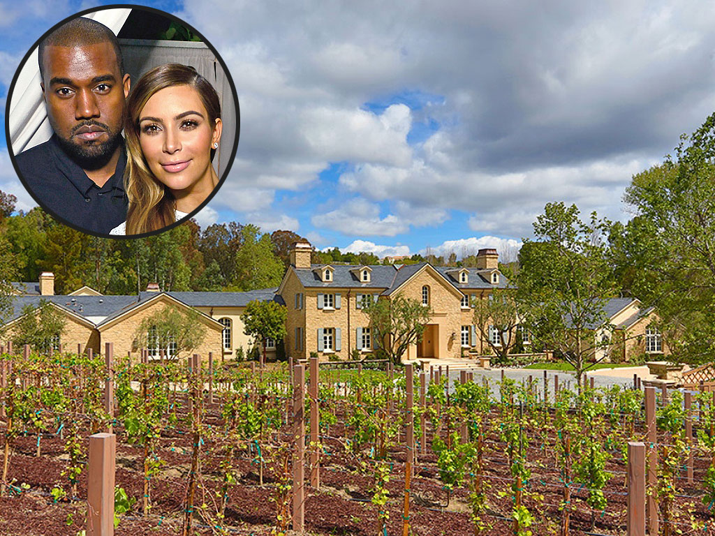 Kanye West and Kim Kardashian (inset) have bought a new home with a vineyard in Hidden Hills, California